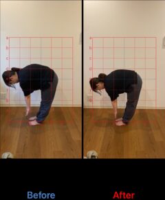 体験レッスンが終わった後の、写真撮影で明らかに姿勢改善が見られご本人も変化に驚き喜んで頂けました。